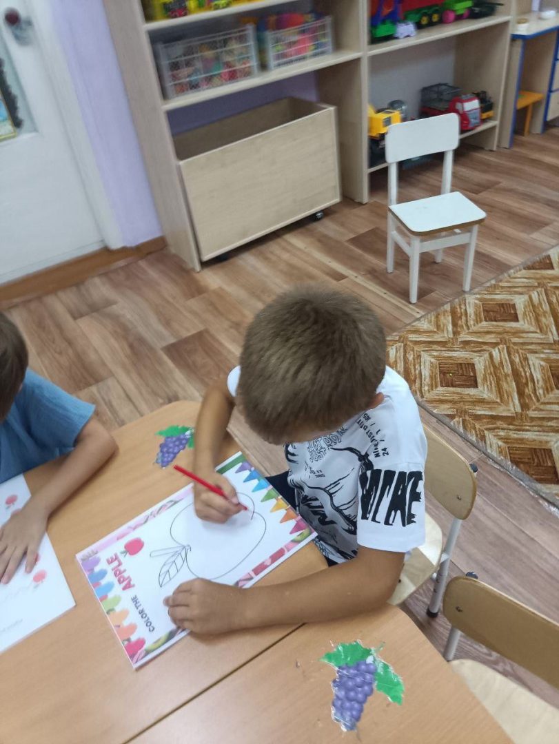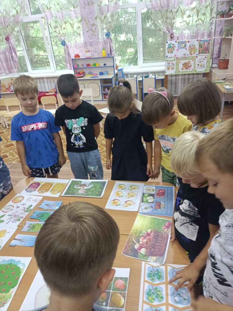 Дети с большим интересом рассматривали иллюстрации, где были показаны различные сорта яблок, сравнивая их между собой.
