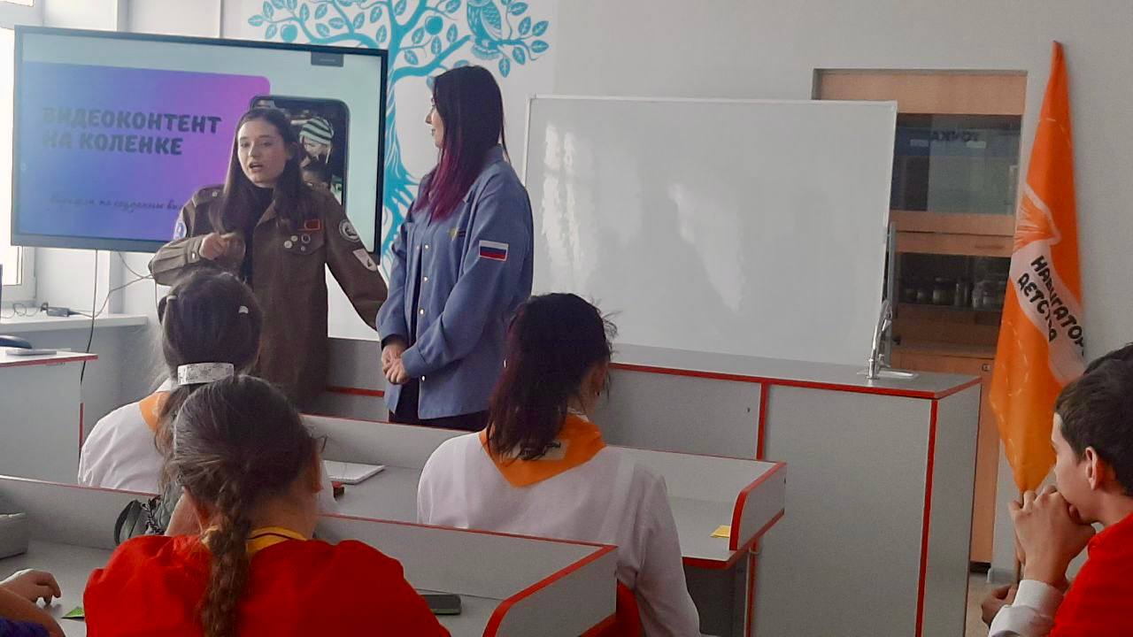 Ребята встретились со студенткой ВВГУ Натальей Гуреевой и специалистом по медиосопровождению 《Росдетцентр》Полиной Сивак. В течение дня ребят прокачали в области медиаконтента.