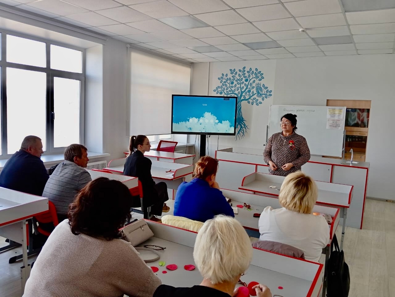 Нина Шмыгарёва, учитель школы села Гражданка, провела увлекательный мастер-класс по изготовлению гвоздик из фоамирана. Сначала она подробно описала материал, его особенности и тонкости работы с ним. Затем участники приступили к созданию своих цветов.