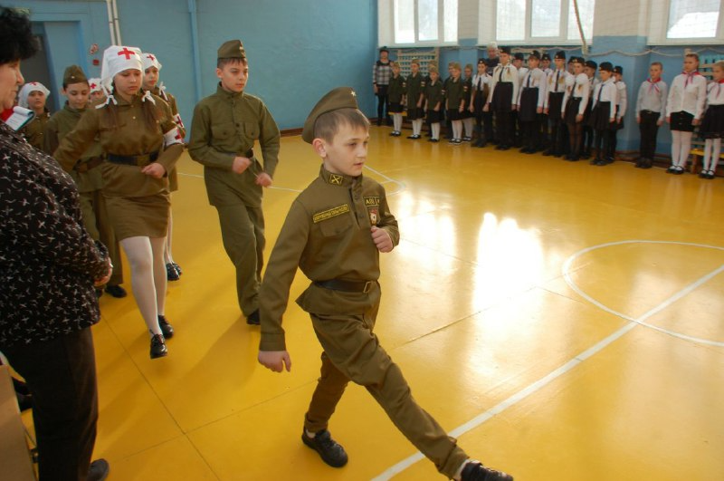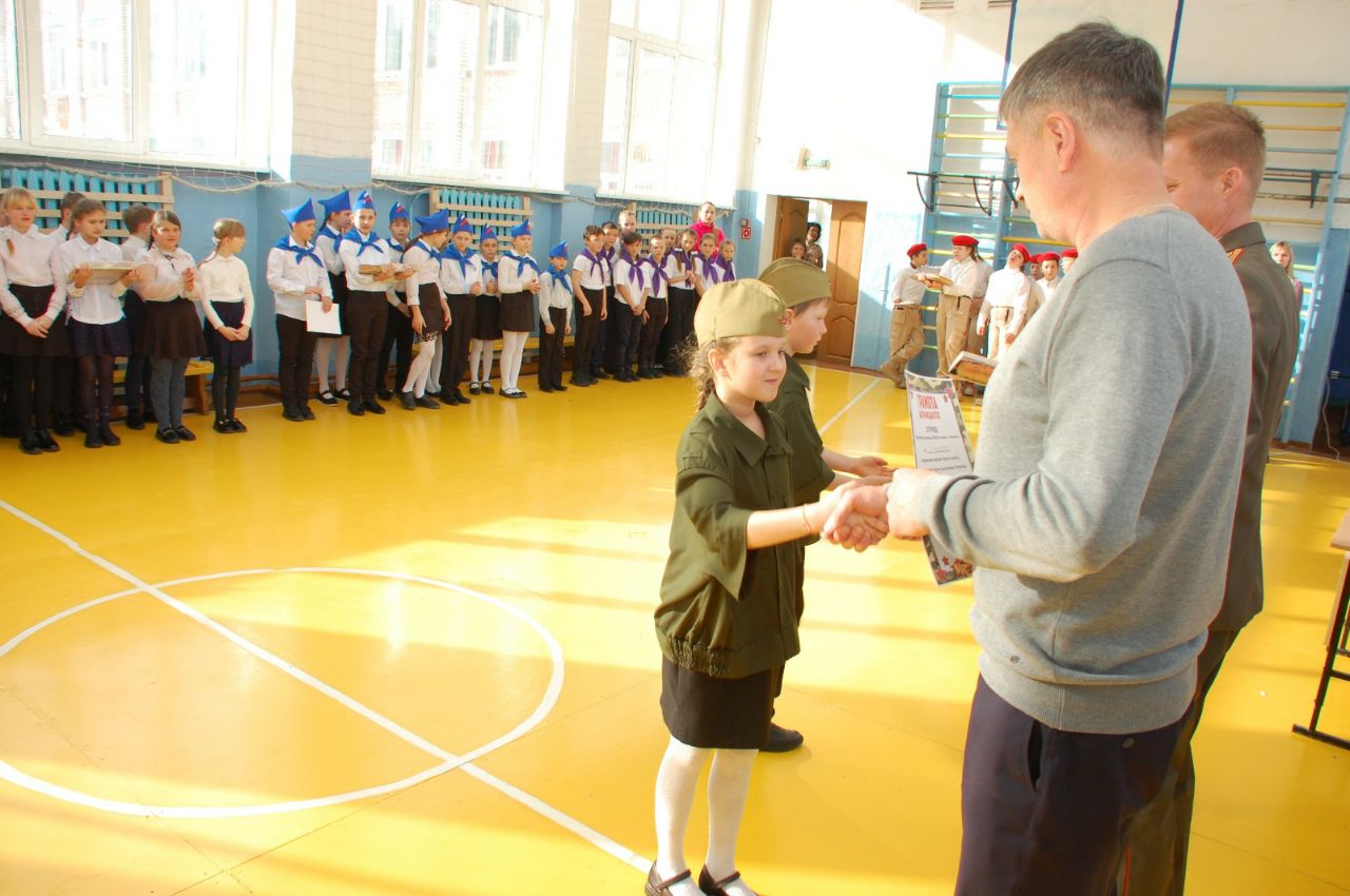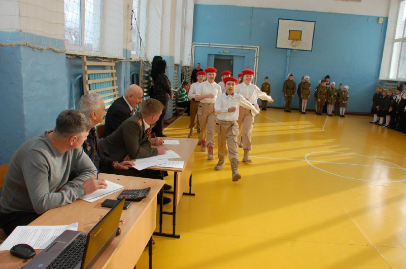 Под собственное исполнение военных песен, повышающих военный и патриотический дух, школьники маршем прошли перед судьями: первым заместителем главы Анучинского муниципального округа Янчуком Андреем Яковлевичем, председателем совета ветеранов Савицким Арнольдом Леонидовичем, майором запаса вооружённых сил РФ Замысловым Сергеем Сергеевичем.