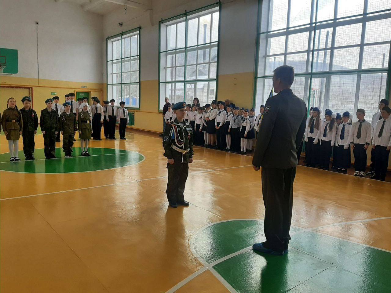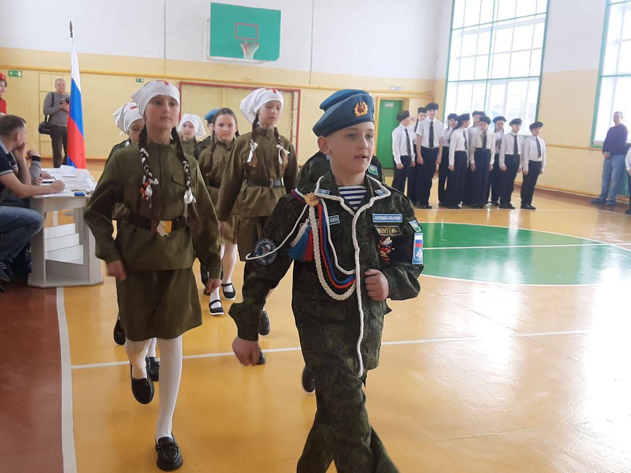 Юные участники, облаченные в парадную форму, чеканили шаг, исполняли строевые команды и с воодушевлением пели патриотические песни.