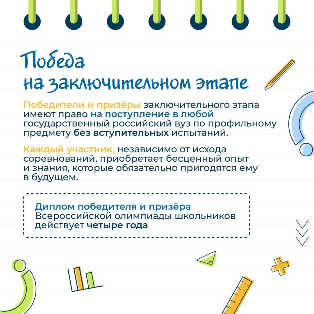 Всероссийская олимпиада школьников проходит в четыре этапа. После школьного этапа следуют муниципальный, региональный и, наконец, заключительный этап, который собирает лучших участников со всей страны.