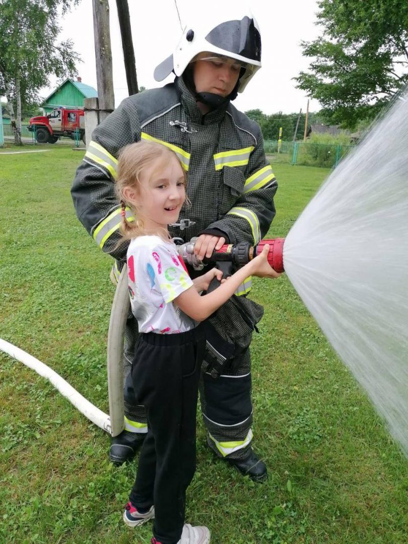 В акции «Юный пожарный» дети проявили свои навыки в тушении пожара с помощью специального оборудования.