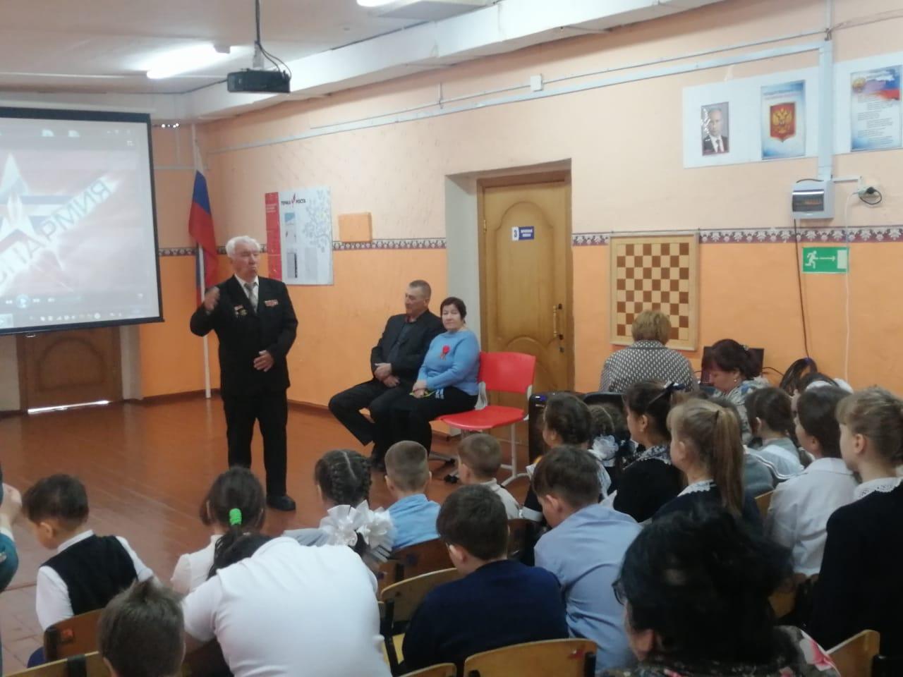 На мероприятие были приглашены Председатель Совета ветеранов Анучинского округа Холохоренко А.М. и Ермаков А.А., Председатель Совета ветеранов Гражданского поселения Козлова Г.М . Гости рассказывали о том, как жили уже в послевоенное время, учились в школе, посещали кружки и спортивные секции, умели хорошо кататься на коньках и лыжах. То, что было услышано на состоявшейся встрече, не пройдет бесследно, навсегда останется в юных сердцах детей.