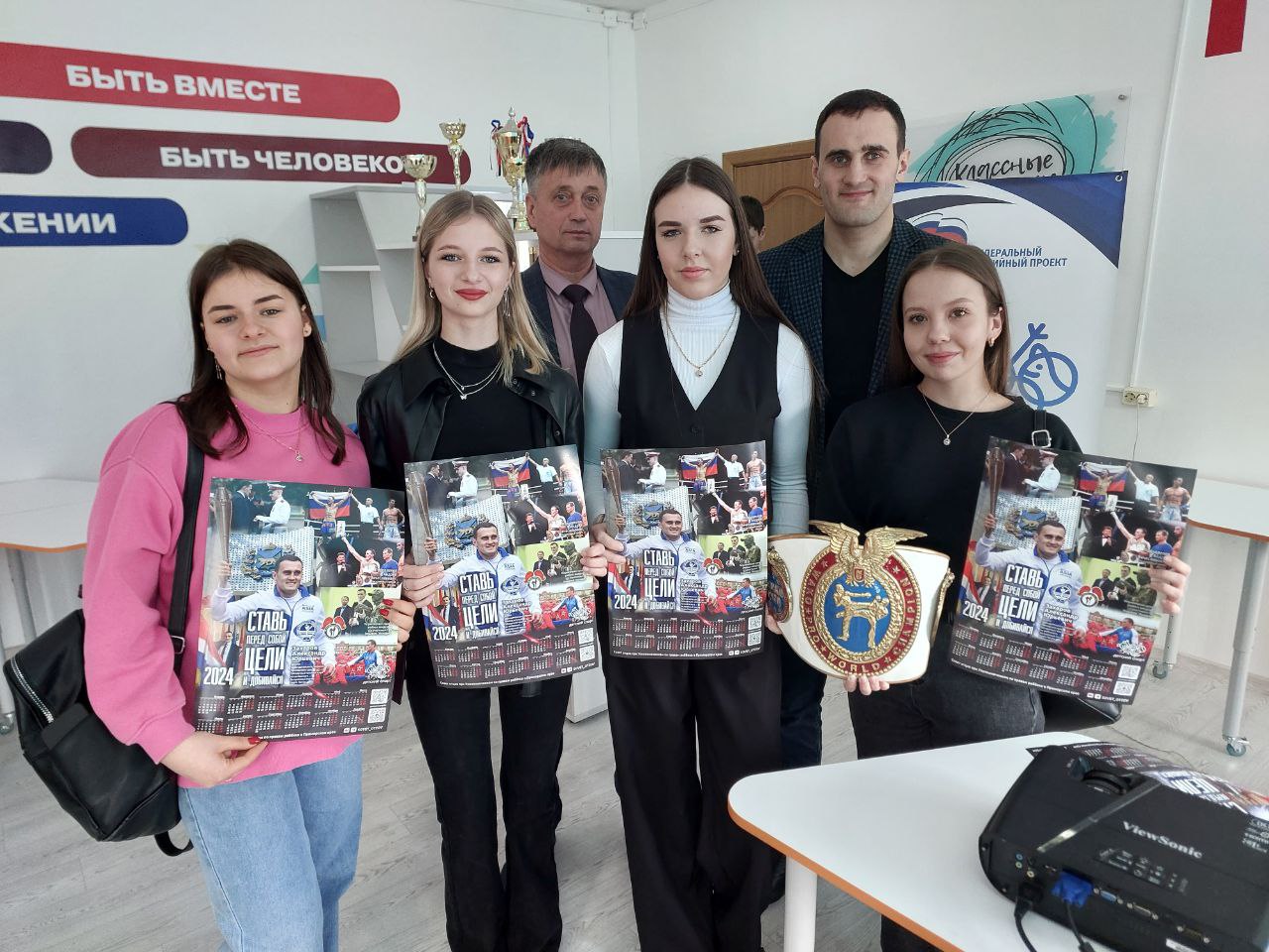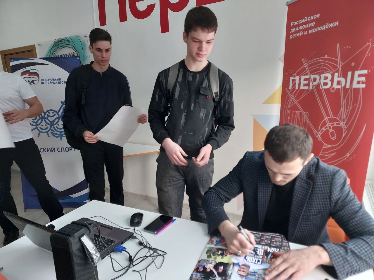 Беседа получилась интересной и очень полезной, ребята смогли задать гостям интересующие их вопросы и получить на них ответы. В конце встречи Александр Юрьевич подарил каждому участнику мероприятия календари с личным автографом чемпиона, каждый желающий смог сделать памятные фото с гостем.